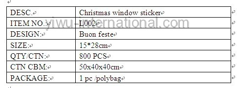 this L002 christmas window sticker which use the PVC material, has good quality and reasonable price.Yiwu International Trade Co.,Ltd can provide you christmas deccoration, christmas oranments,candle holder, christmas gift, christmas ball and so on.welcome to connect us.