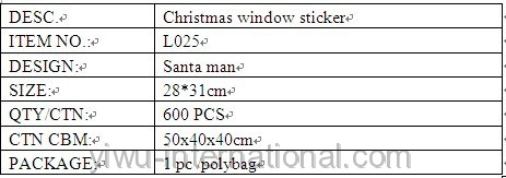this L025 santa set pvc sticker–christmas window sticker which use the PVC material, has good quality and reasonable price.Yiwu International Trade Co.,Ltd can provide you christmas deccoration, christmas oranments,candle holder, christmas gift, christmas ball and so on.welcome to connect us.