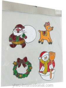 this L027 christmas window sticker which use the PVC material, has good quality and reasonable price.Yiwu International Trade Co.,Ltd can provide you christmas deccoration, christmas oranments,candle holder, christmas gift, christmas ball and so on.welcome to connect us.