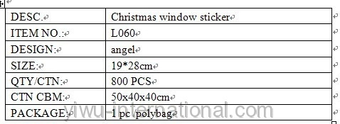 this L060 angle window sticker–christmas window sticker which use the PVC material, has good quality and reasonable price.Yiwu International Trade Co.,Ltd can provide you christmas deccoration, christmas oranments,candle holder, christmas gift, christmas ball and so on.welcome to connect us.