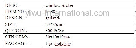 this L080 glass sticker–christmas window sticker which use the PVC material, has good quality and reasonable price.Yiwu International Trade Co.,Ltd can provide you christmas deccoration, christmas oranments,candle holder, christmas gift, christmas ball and so on.welcome to connect us.
