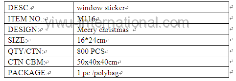 this christmas window sticker which use the PVC material, has good quality and reasonable price.Yiwu International Trade Co.,Ltd can provide you christmas deccoration, christmas oranments,candle holder, christmas gift, christmas ball and so on.welcome to connect us.