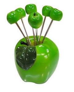 FF-14 yiwu green apple fork home ornament is made of resin and stainless steel,a exquisite gift for your family,making the dining hall more beautiful.