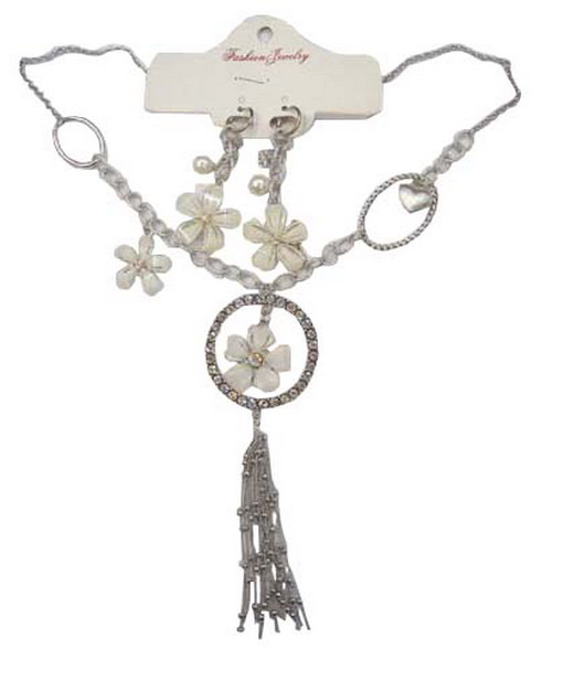 This is a range of necklace and earrings,the beautiful flowers are the most important part of the jewelry,NEC-1 yiwu white flower necklace and earring jewelry set is charming,but has reasonable price.