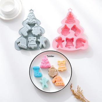 Yiwu 6 Hole Christmas Tree Gingerbread Man Elderly Tree Holiday Theme Baking Chocolate Mold Moldes de Silicon Fondant Product Details: