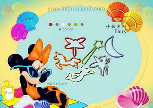 this fairy design rubber bands which use 100% silicone, has good quality and reasonable price. It has innovative design, beautiful modelling, colour is uniquely flexible toughening force strong, not easily broken, not glue the hair, avirulent insipidity, durable, can be repeated use deformed! these products applicable to ornaments, toy, stationery, etc, and applicable children as early as game, intellective development, cultivate children’s cognitive and imagination, also can be used as the firm’s advertising gifts and business promotion activities. Yiwu International Trade Co.,Ltd can provide you any design ,color and size rubber bands .welcome to connect us.