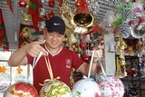 “This is called coloured drawing or pattern, we have not ball gold glitter powder production Christmas ball.” Yiwu city eda handicraft factory is the general manager of the timber Lin said. In things of Christmas balls use a broader, more than 10 years, the design of Christmas ball reform is the most frequent, with gold glitter powder Christmas ball, sticker ball etc. Product. Lin become useful to introduce this kind of coloured drawing or pattern by spray process ball, production and other than Christmas ball, save more than half of the artificial. “This product listed two months, order has row until the end of July.” Lin said addition, order of a Russian guests, Europe andAfricahave guests.